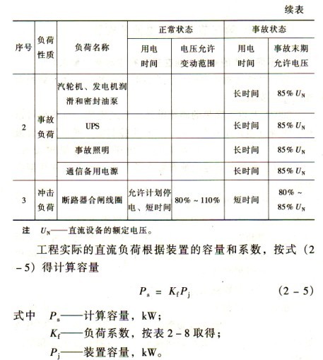 (1)事故初期的沖擊負(fù)荷。如備用電源斷路器采用電磁合閘線圈時,應(yīng)按備用電源實際自投斷路器臺數(shù)計算,沖擊負(fù)荷系數(shù)取0.5。低電壓保護(hù)、母線保護(hù)、低頻減載等跳閘回路應(yīng)按實際數(shù)之和計算,沖擊負(fù)荷系數(shù)取0.6~0.8。