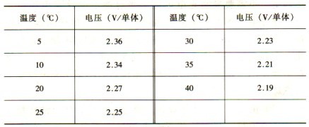 (3)注意檢查各單體電池問溫度變化,個別電池與整體電池溫差超過3℃,有可能導致該電池所需浮充電流的增大,所以設備環境溫度非常重要,最佳運行溫度為25℃,一般保證工作環境溫度在20~25℃之間。達不到者應采用空調補助措施,或進行溫度補償。因為環境溫度低于25℃時,電池容量減少,壽命延長,環境溫度高于25℃時,電池容量增加而壽命縮短。電池避免安放在太陽直曬或溫差較大的環境中。以25 cC為準,環境溫度每升高l℃時,浮充電壓降低0.003V/單體;環境溫度每降低1 cC時,浮充電壓升高0.003v/單體;如果環境溫度變化超過l0℃,而沒有修正浮充電壓,將可能導致電池損壞。溫度補償參數見表3-3。