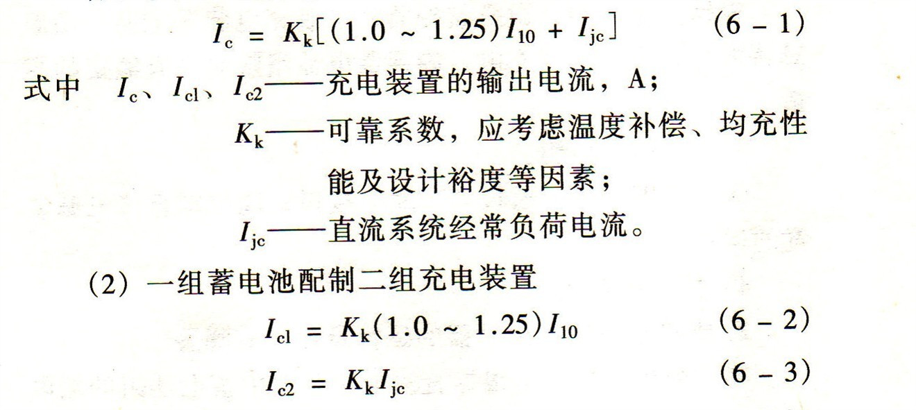(4)二組蓄電池配制二組充電裝置每組充電裝置按式(6-3)計算。